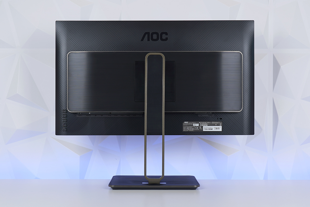 알파스캔 AOC U27U2S 모니터의 뒷면 디자인은 상당히 세련된 느낌을 주는 편입니다. 특히 스탠드가 인상적이어서 가정이나 사무실 등 인테리어에 신경을 많이 쓴 공간에서 사용해도 좋을 것 같습니다.