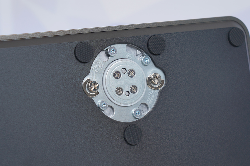 스탠드와 베이스는 간단하게 결합을 할 수 있도록 디자인되었고 바닥에 여러 개의 고무 지지대가 배치되어 있어서 안정적으로 알파스캔 AOC U27U2S 모니터를 사용할 수 있도록 도와주는 역할을 합니다.