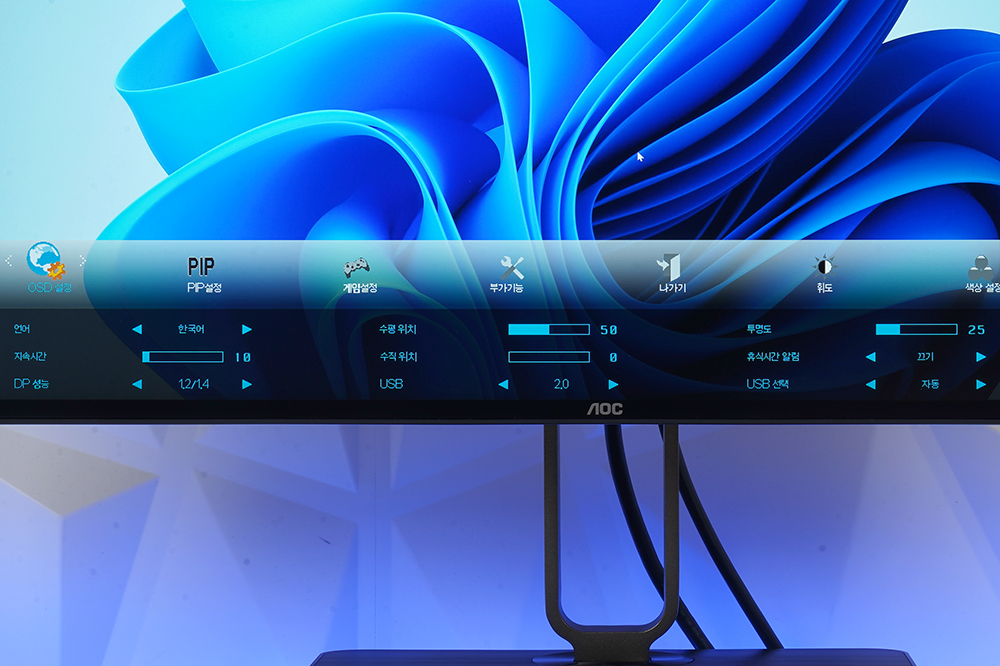 OSD 설정에서는 언어나 투명도 그리고 지속 시간 등을 변경할 수 있습니다. 그 외에도 다양한 옵션들이 준비되어 있으니 자신의 사용 패턴에 맞게 설정하는 것을 추천합니다.