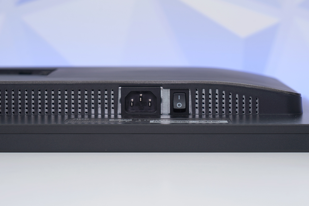 알파스캔 AOC U27U2S 모니터는 어댑터가 내장된 형태로 제작되었고 전원 단자와 별도의 스위치가 배치되어 있습니다. 전원 버튼이 2개나 탑재되어 있다는 점이 재미있는 부분이라고 생각되었습니다.