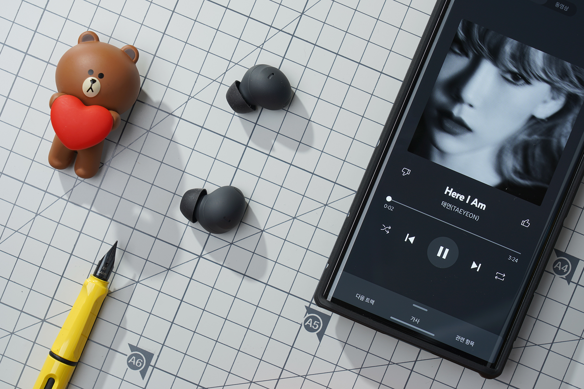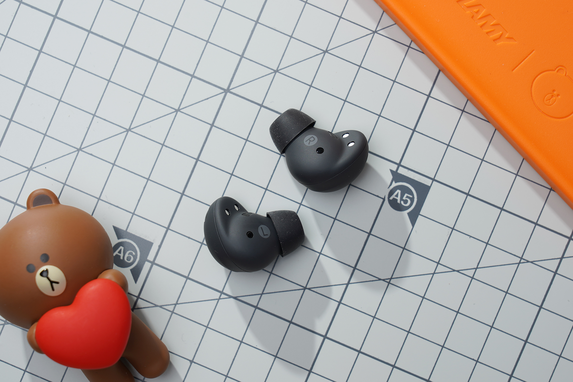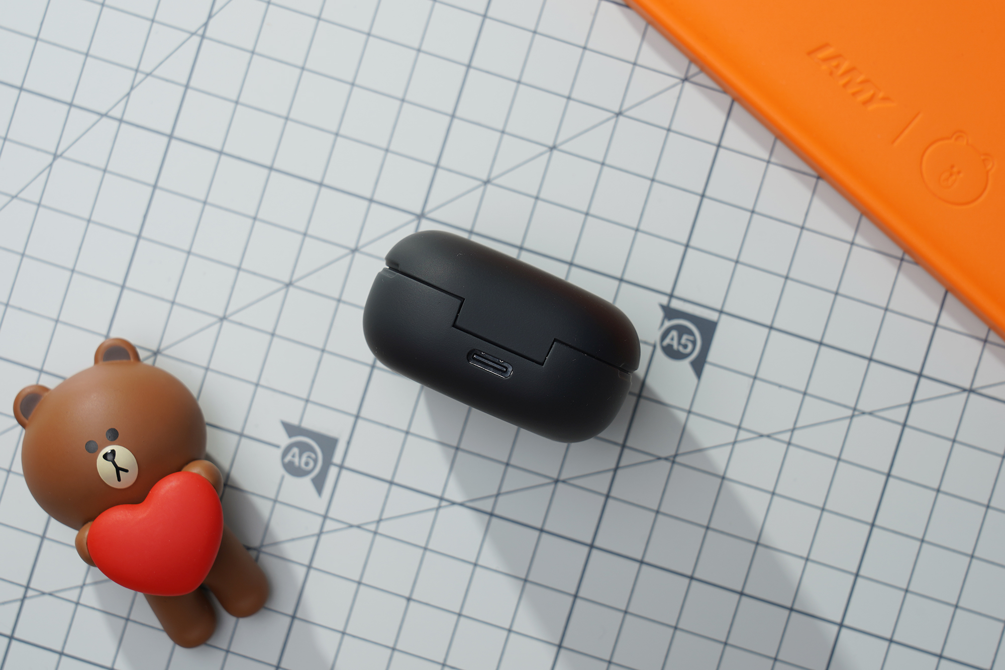 이어버드의 무게는 약 5.7~5.8g으로 측정되었습니다. 저울과 제품 자체에 약간의 편차가 있을 수 있으니 참고만 하시는 것을 추천합니다. 귀에 장착해서 사용하기에 부담이 없다는 것만은 분명합니다.
