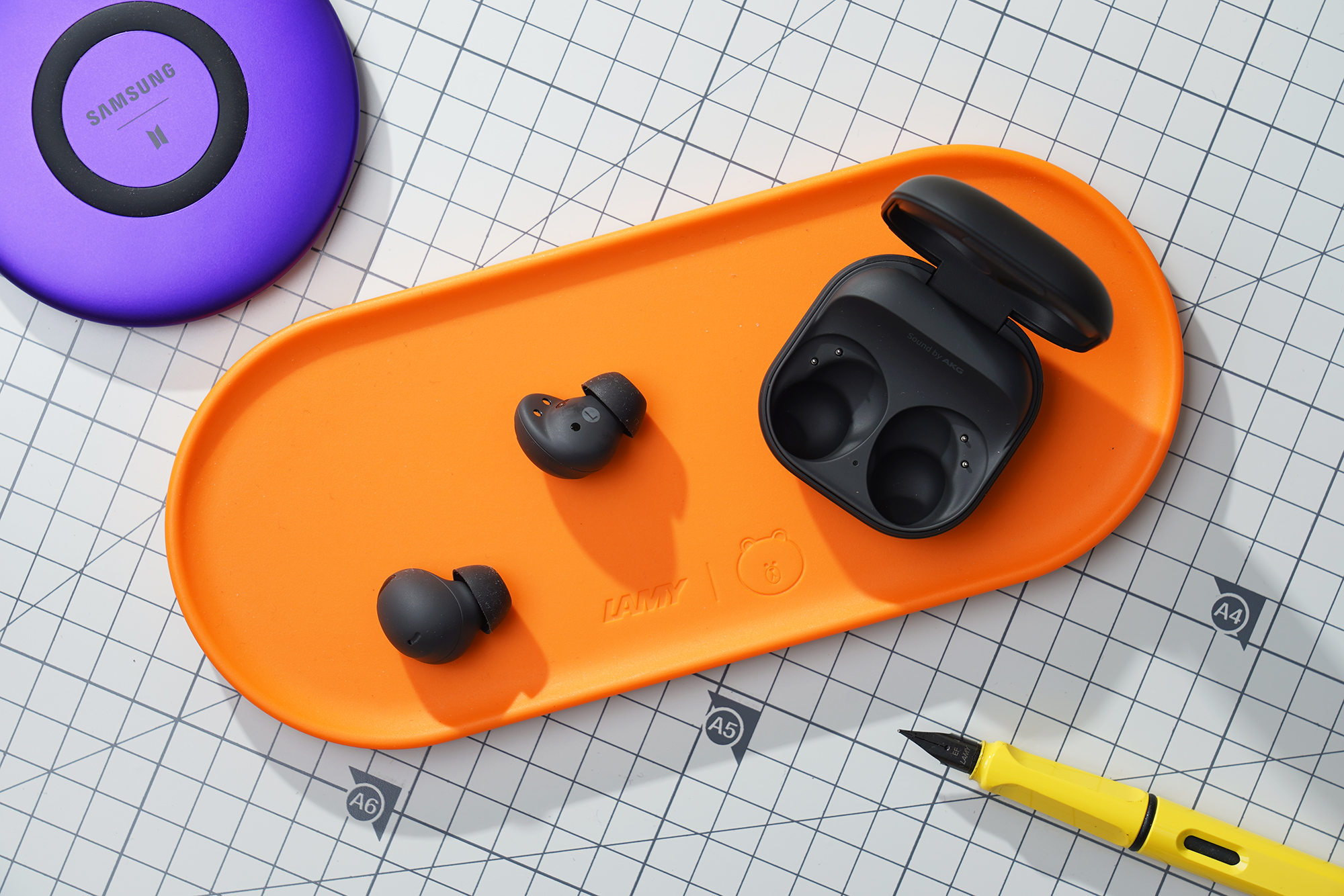 콤팩트한 크기의 갤럭시 버즈2 프로의 충전 케이스는 버즈 라이브와 버즈 프로 그리고 버즈2까지 모두 동일합니다. 그래서 케이스들이 모두 호환된다는 점은 편리한 부분이라고 생각되었습니다.