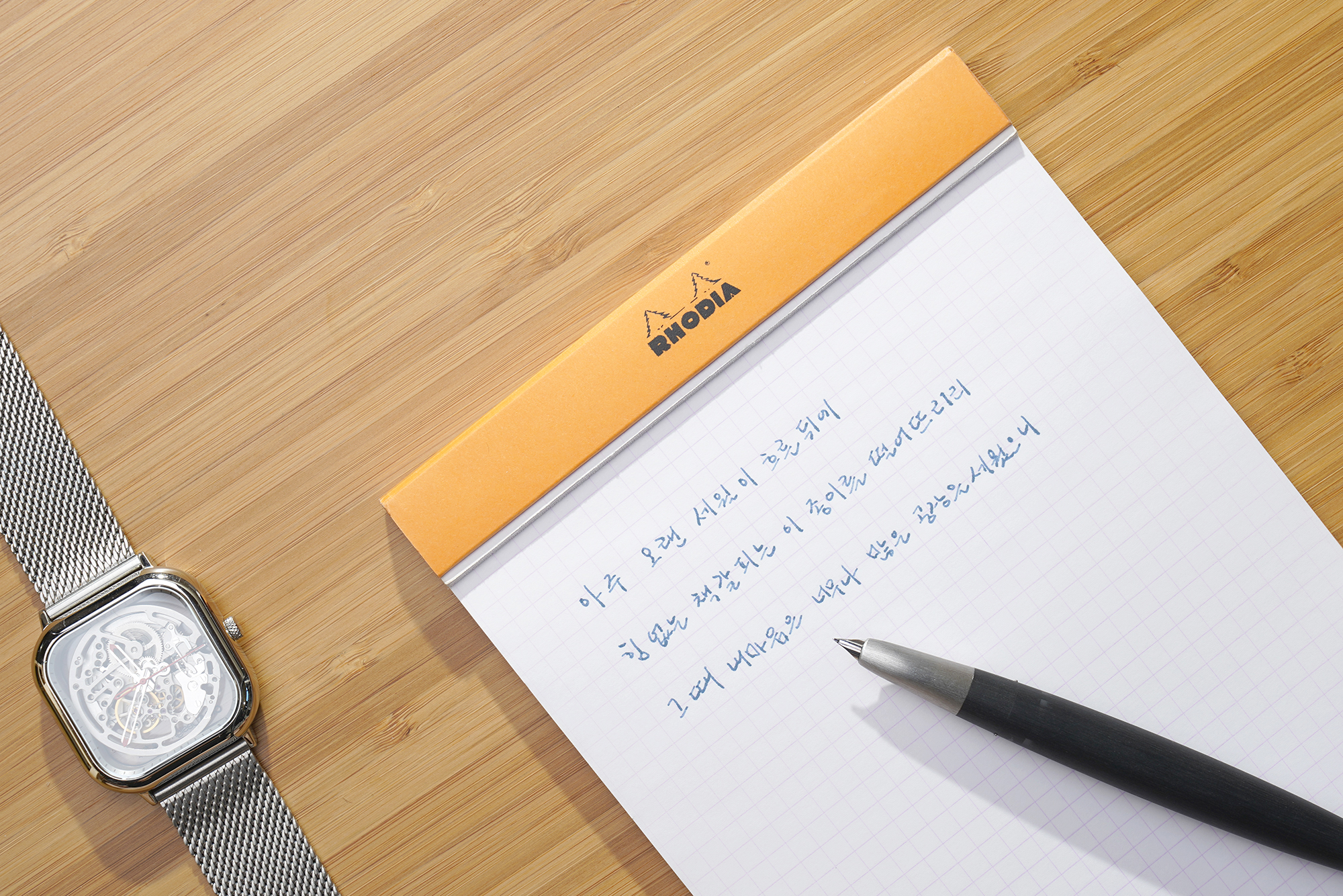 라미 2000 마크롤론 만년필은 14K 금촉이어서 같은 라미 사파리 EF 촉보다는 약간 두꺼운 느낌이었습니다. 그리고 필기감은 종이에 따라서 다르지만, 버터를 가르는 듯한 부드러운 느낌이었습니다. 그리고 펜촉이 굵어질수록 부드러움이 올라가고 EF촉의 경우에는 약간의 서걱거림을 느낄 수 있습니다.