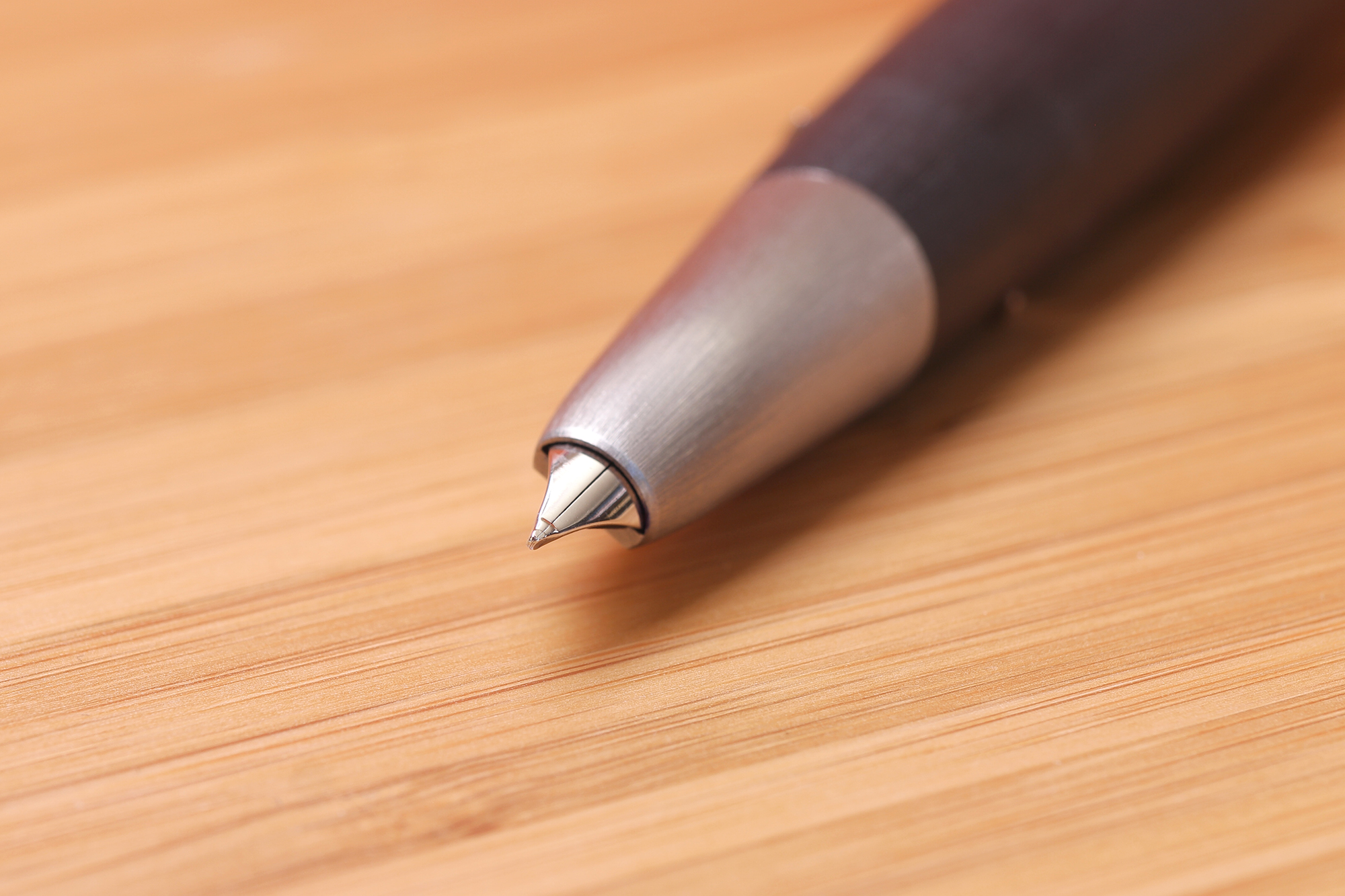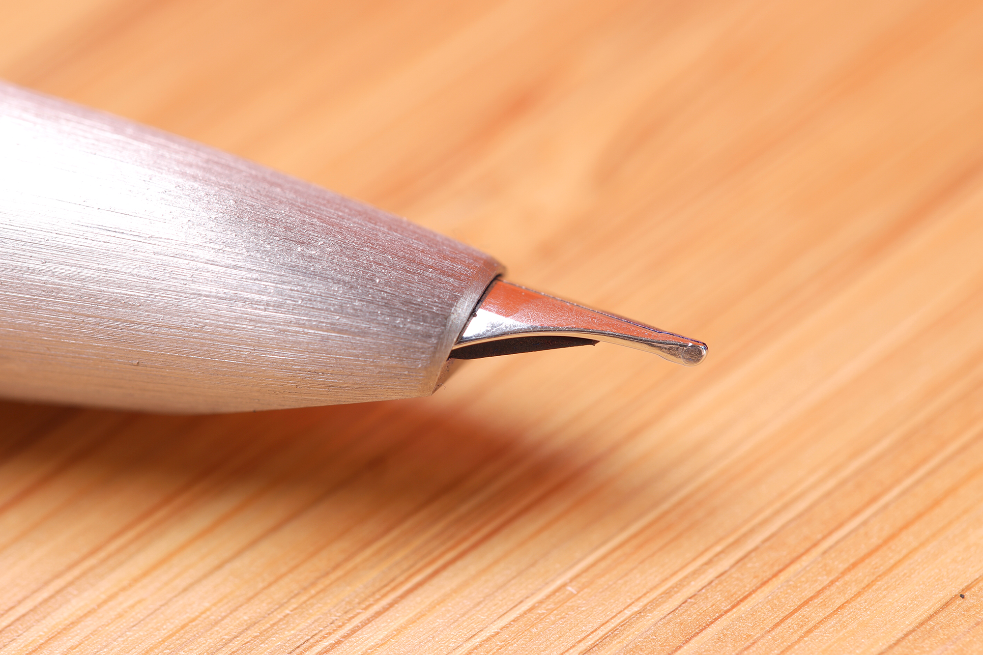 라미 2000 마크롤론 만년필에는 플래티늄 코팅으로 마무리된 14K 금촉이 장착되어 있습니다. 특히 후드닙 형태로 제작되어서 잉크 마름이 적다는 장점이 있지만, 마감이 생각보다 뛰어난 편은 아니고 제품에 따라서 편차가 심하다는 단점이 있습니다. 그래서 오프라인에서 미리 검수를 한 후에 구매하는 분들도 있을 정도입니다.