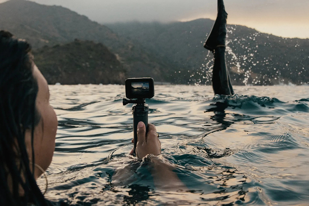 고프로 히어로11 블랙은 터프한 환경에서 사용하도록 제작된 제품이라서 별도의 액세서리 없이도 최대 10미터 방수 기능을 지원합니다. 그리고 물에 젖더라도 선명한 영상이나 사진을 촬영하기 위해서 발수 렌즈 커버 적용되었습니다.