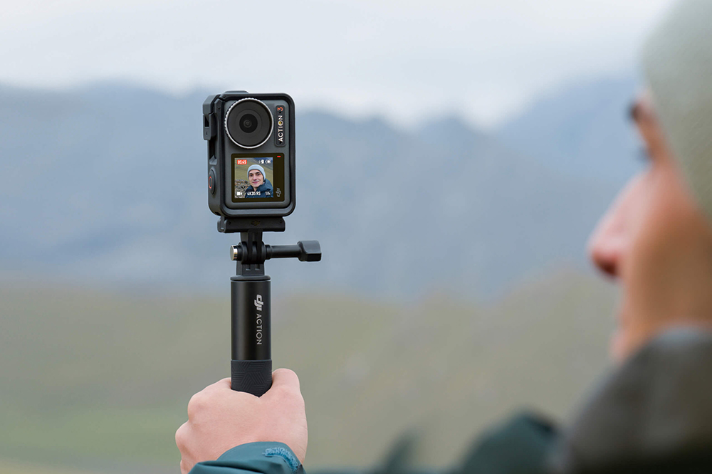 DJI 오즈모 액션 3 액션캠의 전면에는 1.4인치 320 x 320 해상도의 전면 스크린이 탑재되어 있어서 간편하게 셀피를 촬영할 수 있도록 도와주는 역할을 합니다. 혼자서 촬영해야 하는 크리에이터들에게 유용한 특징입니다.