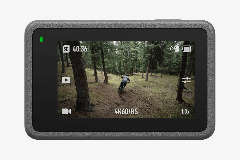 DJI 오즈모 액션 3 액션캠의 전면에는 1.4인치 320 x 320 해상도의 전면 스크린이 탑재되어 있어서 간편하게 셀피를 촬영할 수 있도록 도와주는 역할을 합니다. 혼자서 촬영해야 하는 크리에이터들에게 유용한 특징입니다.