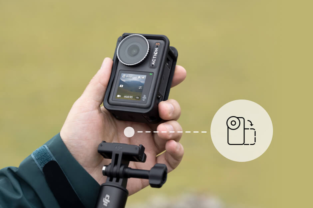 DJI 오즈모 액션 3 액션캠의 가장 큰 차별점 중의 하나는 퀵 릴리즈 수직 촬영용 마운트를 제공한다는 점입니다. 그래서 최근에 유행하고 있는 세로 형태의 동영상을 간편하게 촬영할 수 있습니다.