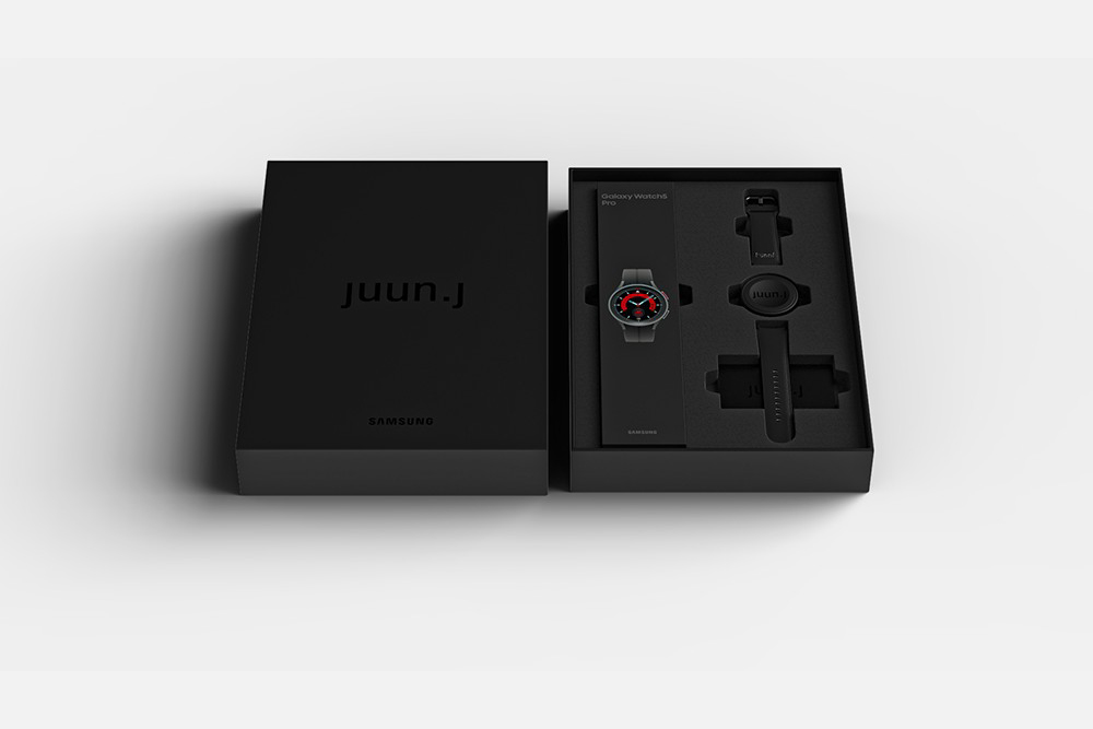 워치5 시리즈 준지(JUUN.J) 에디션의 경우에는 워치5 프로 블랙 티타늄 컬러나 워치5 40/44mm 그라파이트 컬러와 준지(JUUN.J) 하이브리드 가죽 스트랩, 워치 페이스, 무선 충전기로 구성되어 있습니다. 가격은 워치5 프로는 56만 9천원, 워치5 44mm는 39만 9천원, 워치5 40mm는 36만 9천원입니다.