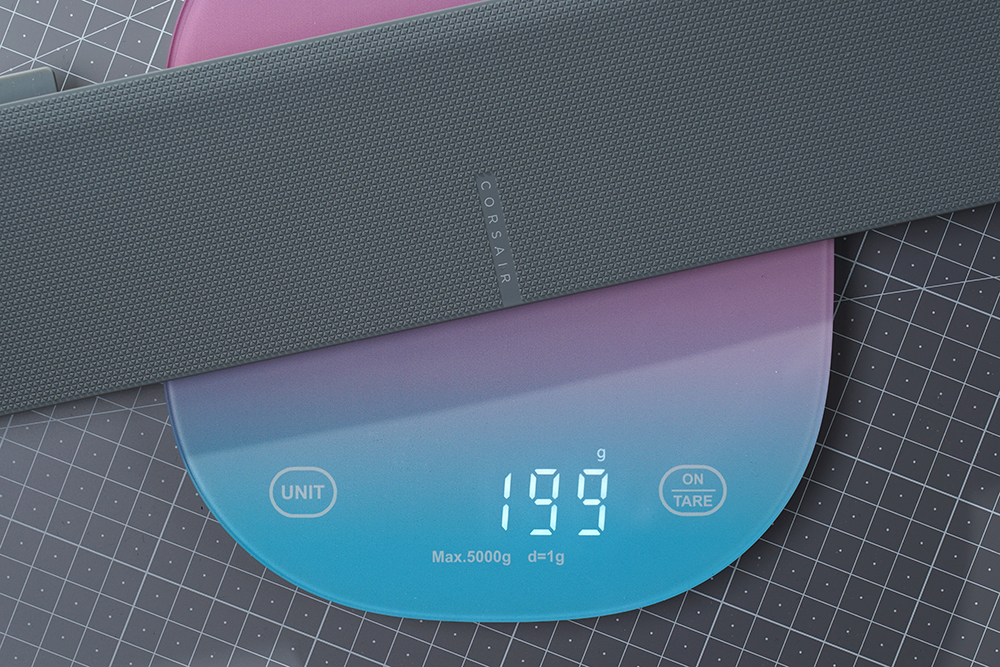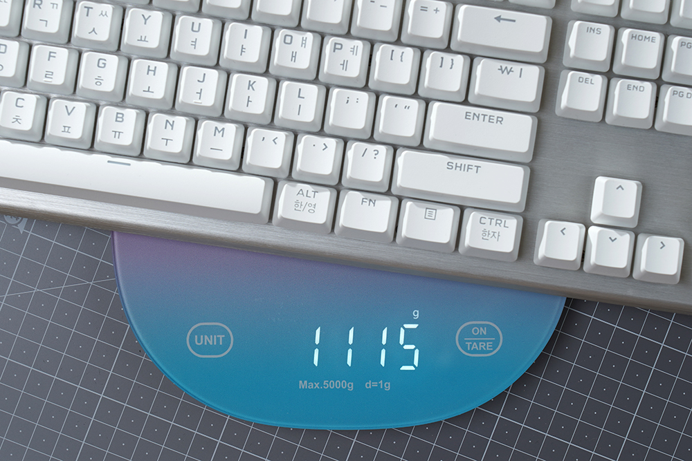 커세어(CORSAIR) K70 RGB PRO OPX의 무게를 확인해보면 키보드 자체는 1.115kg으로 측정되었고 손목 받침대는 0.199kg입니다. 적당한 무게감을 가지고 있어서 안정적으로 타이핑을 하거나 게임을 플레이할 수 있습니다.