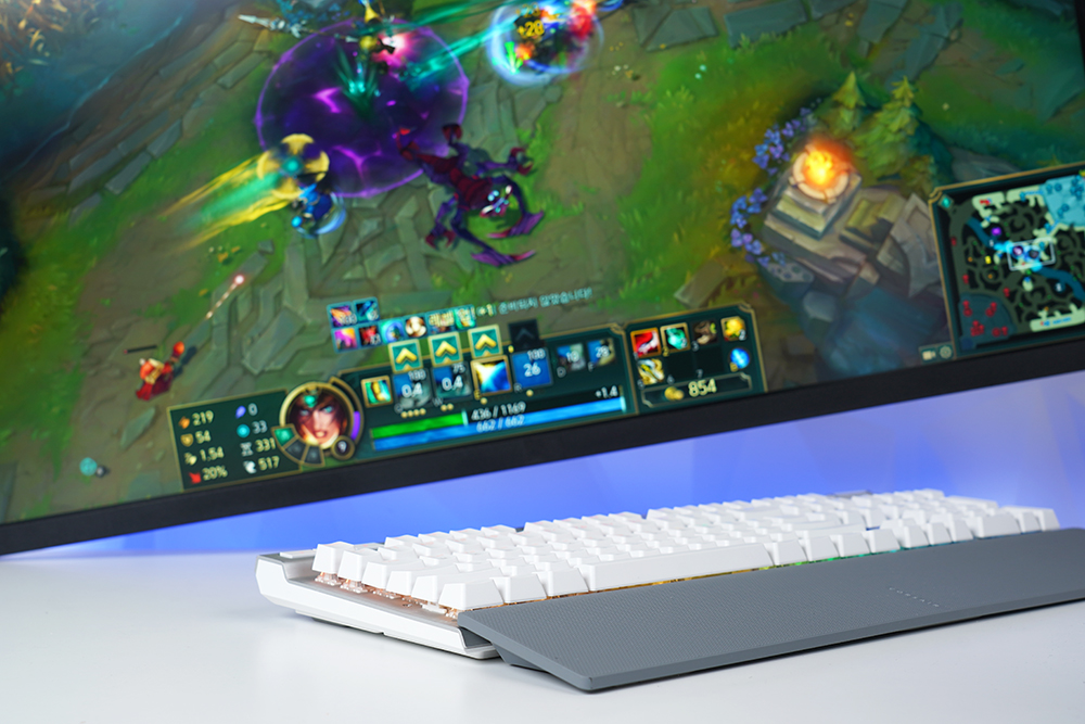 그리고 커세어(CORSAIR)만의 독점적인 광학 기계식 키 스위치를 탑재했다는 점도 차별화된 특징입니다. 특히 1.0mm 작동 거리에서 동작해서 빠르게 키를 입력할 수 있고 그만큼 게임에서 승리할 확률도 높아집니다.