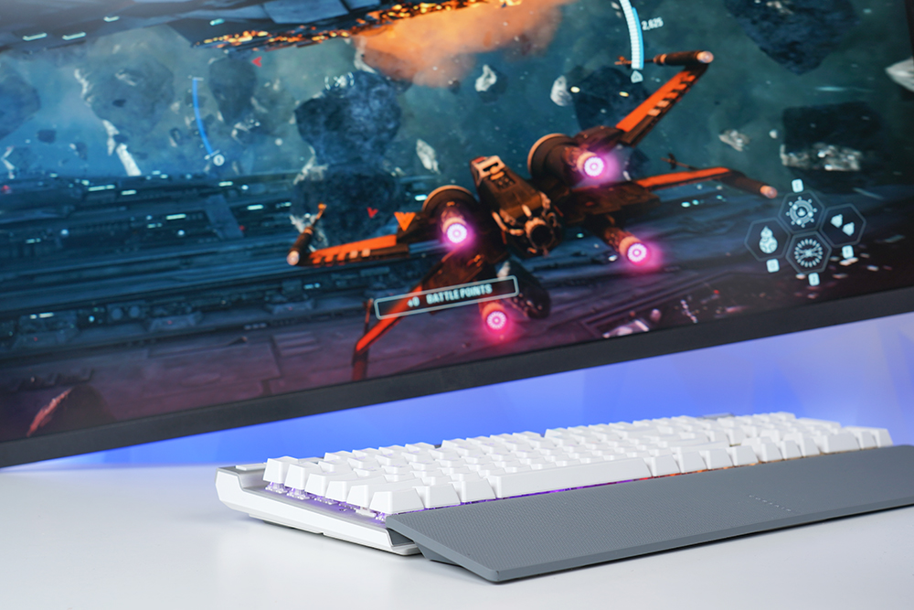 그리고 커세어(CORSAIR)만의 독점적인 광학 기계식 키 스위치를 탑재했다는 점도 차별화된 특징입니다. 특히 1.0mm 작동 거리에서 동작해서 빠르게 키를 입력할 수 있고 그만큼 게임에서 승리할 확률도 높아집니다.
