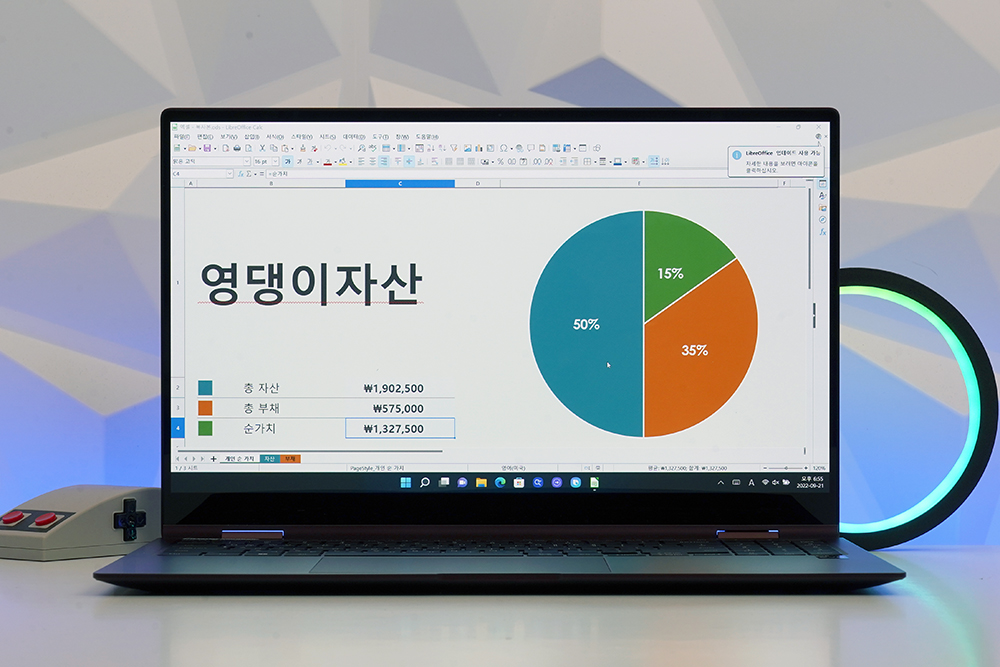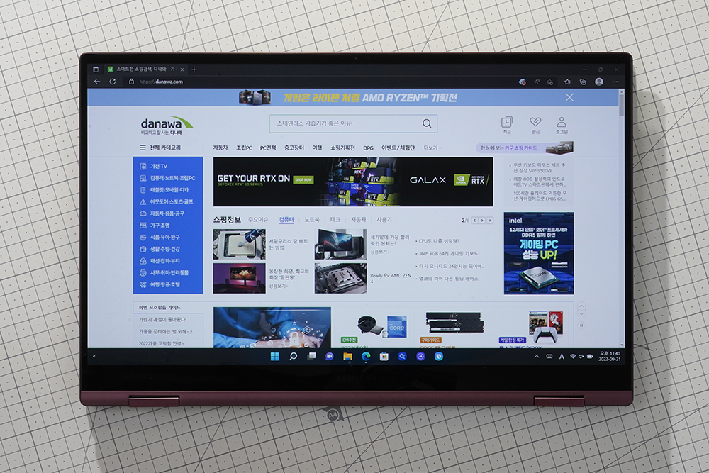 삼성전자 갤럭시북2 프로360은 2 in 1 노트북으로 설계되어 있어서 태블릿과 노트북 두 가지 형태로 활용할 수 있습니다. 우선 태블릿 형태에서는 간단하게 웹 서핑을 하는 등의 용도로 활용할 수 있습니다.