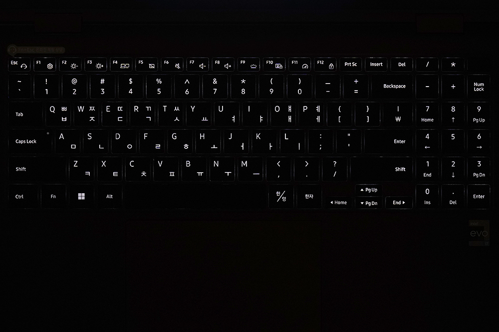 키보드에는 화이트 컬러의 백라이트가 탑재되어 있습니다. 그래서 야간에도 각종 작업을 할 수 있다는 특징이 있습니다. 그리고 기능 키를 이용해서 간단하게 제어할 수 있습니다.
