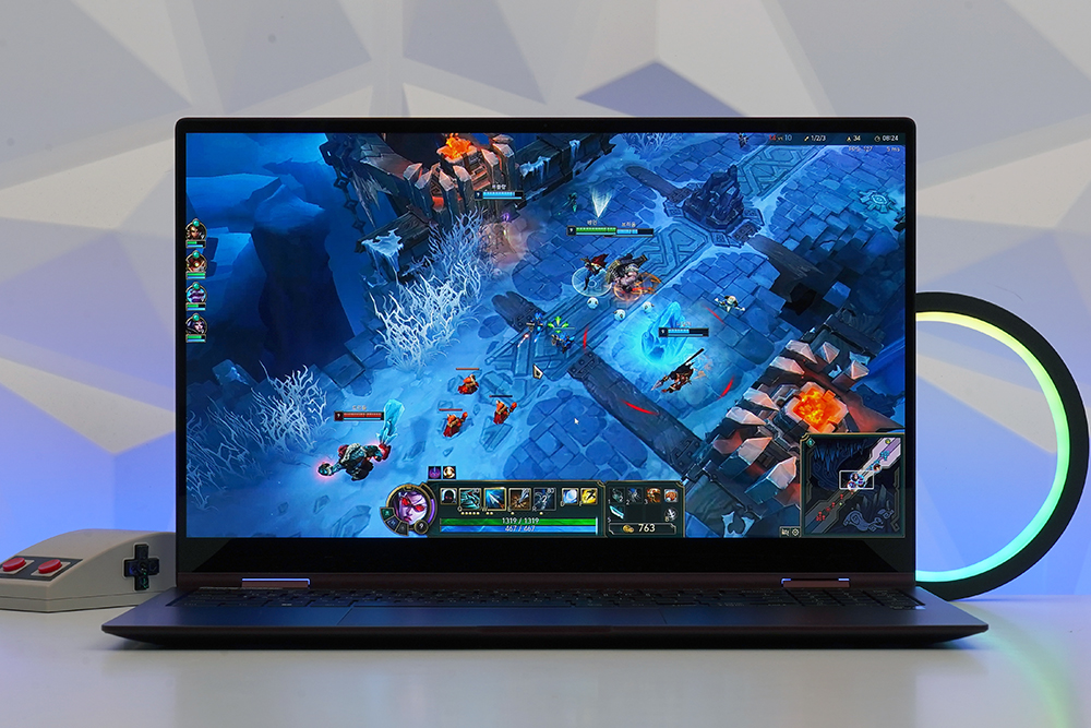 삼성전자 갤럭시북2 프로360의 게임 성능을 살펴보면 리그 오브 레전드는 FULL HD 해상도에서 칼바락 나락과 그래픽 보통에서 최소 56프레임, 최대 138프레임, 평균 123프레임이 측정되었습니다.