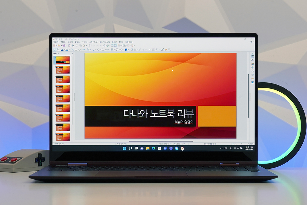 삼성전자 갤럭시북2 프로360 베젤의 두께도 상당히 슬림한 편입니다. 그래서 노트북의 전체 크기가 상대적으로 콤팩트한 것은 물론이고 콘텐츠에 더욱 몰입할 수 있다는 장점이 있습니다.