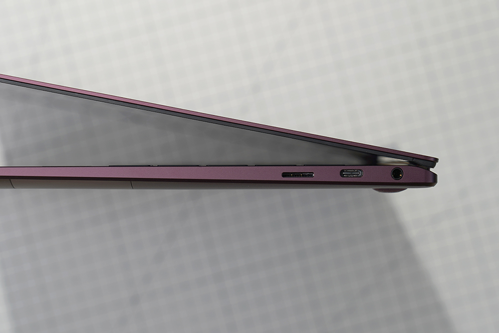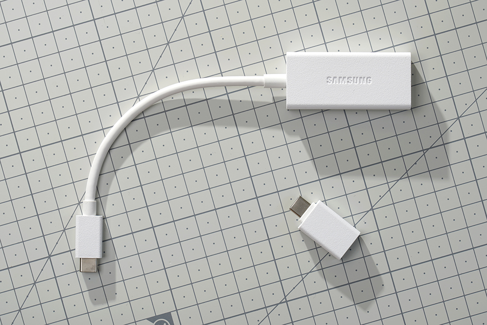 반대쪽 옆면에는 마이크로SD 메모리 카드 슬롯과 USB Type-C 포트 그리고 이어폰/헤드셋 잭이 배치되어 있습니다. 그리고 기본으로 제공되는 어댑터를 이용해서 USB Type-A 장치들도 연결할 수 있습니다.