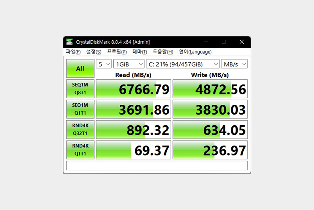 삼성전자 갤럭시북2 프로360에는 4세대 PCI Express 4.0을 지원하는 512GB 용량의 NVMe SSD가 탑재되어서 속도가 상당히 빠른 편입니다. 그리고 여분의 슬롯을 이용해서 저장공간을 확장할 수 있습니다.