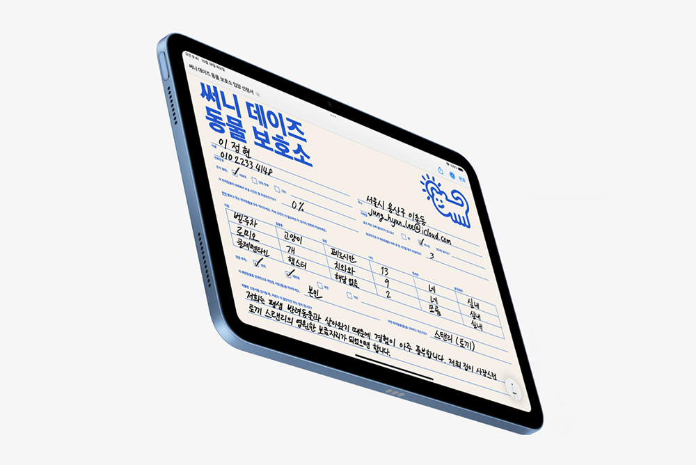 아이패드 10세대에는 10.9인치 2360 x 1640 해상도의 Liquid Retina 디스플레이가 탑재되었습니다. IPS 기술이 적용되어서 시야각이 우수하고 True Tone 기능과 500니트 밝기를 제공한다는 장점이 있습니다. 특히 디자인이 개선되었다는 점이 인상적인 부분입니다.