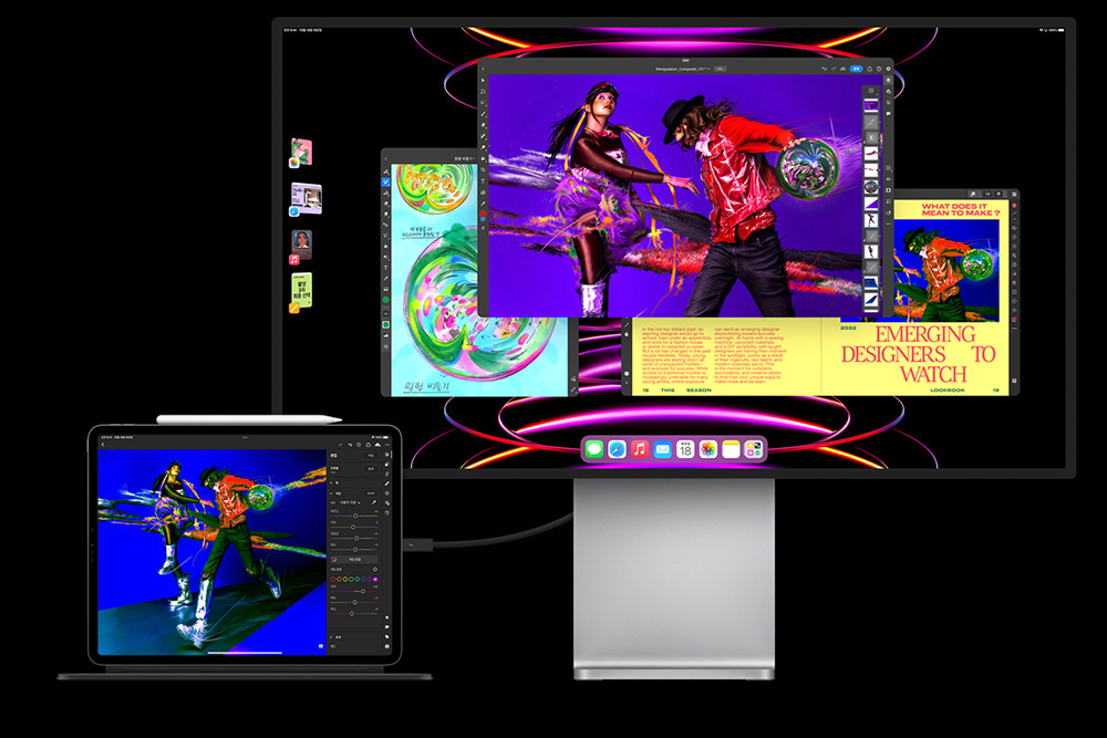 아이패드 프로 6세대에는 40Gb/s속도를 제공하는 USB-C타입의 썬더볼트4/USB4 포트가 탑재되었습니다. 그래서 외장 모니터나 저장 장치들을 연결해서 흡사 노트북처럼 활용할 수 있습니다.