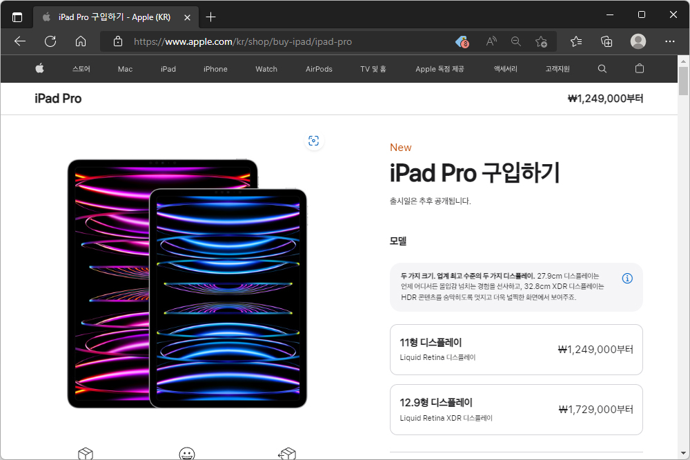 8. 11형 1,249,000원부터 시작 / 12.9형 1,729,000원부터 시작