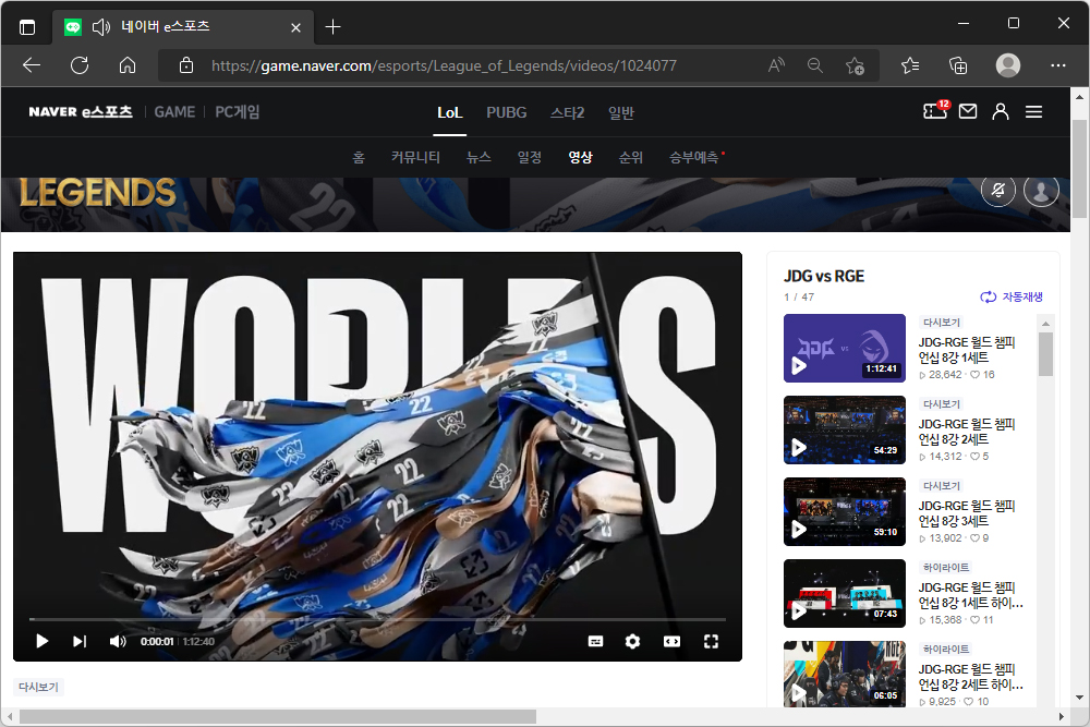 지금까지 네이버 e스포츠 사이트에서 롤드컵 월즈 2022의 실시간 중계를 시청하고 일정을 확인하고 이미 지난 게임들의 영상을 다시보기하는 방법을 자세하게 확인해 보았습니다. 이 글을 작성하는 현재 T1과 RNG의 경기가 진행되고 있고 내일은 젠지와 담원 기아의 경기 그리고 모레는 DRX와 EDG의 경기가 진행될 예정인데요. LCK팀들의 선전을 기대합니다.