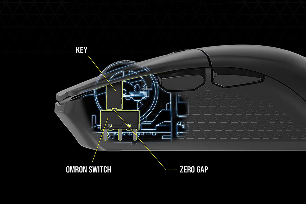 커세어 카타르 엘리트 무선 게이밍 마우스에는 CORSAIR 퀵 스트라이크 버튼이 적용되었습니다. 옴론(OMRON) 스위치와 마우스 버튼 사이에 틈이 없도록 설계되었고 빠른 클릭 속도를 제공한다고 합니다. 이 부분은 실제로 체험을 해 보아야 할 것 같습니다.