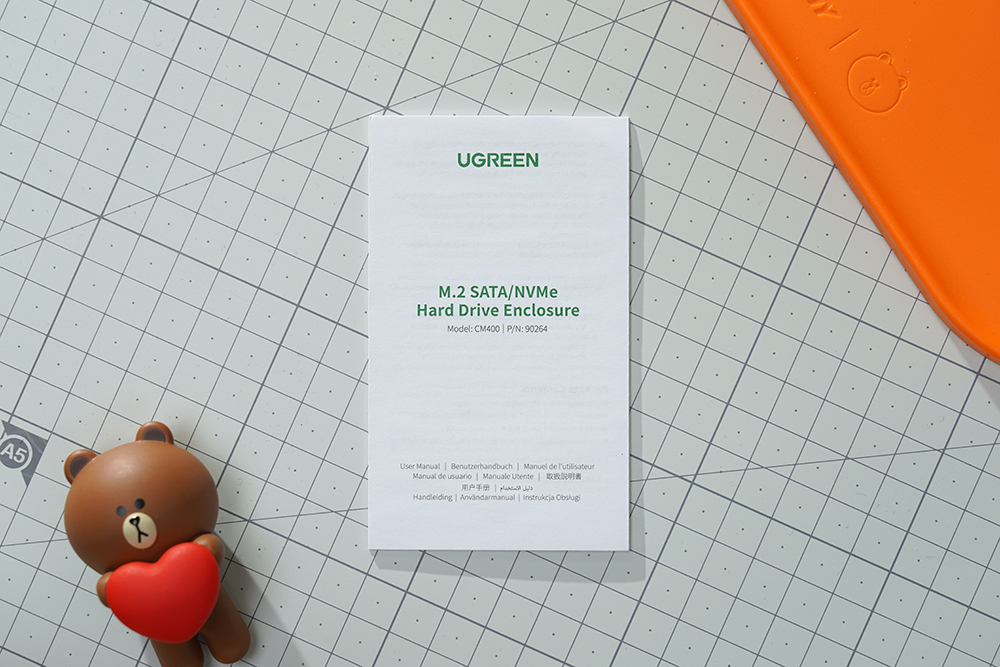 유그린 CM400 M.2 NVMe SSD 외장케이스의 구성품을 살펴보면 설치 방법이 설명되어 있습니다. 한국어는 없지만 그림으로 안내되어 있어서 한 번 정도 자세하게 읽어 보면 어렵지 않게 활용할 수 있을 것으로 예상합니다.