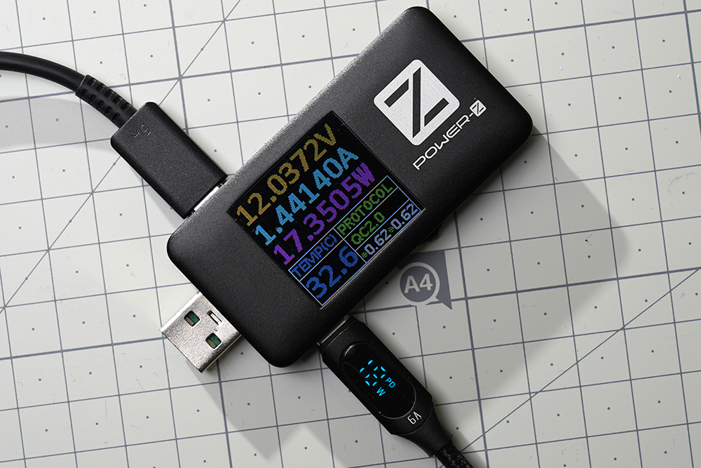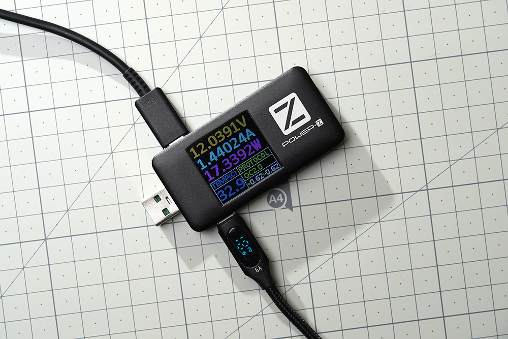 Toocki USB-C 케이블의 차별화된 특징 중의 하나는 소비전력 측정기가 기본으로 부착되어 있다는 점입니다. 그래서 현재 어느 정도로 충전이 되고 있는지를 대략 가늠해 볼 수 있다는 점이 유용한 부분입니다.