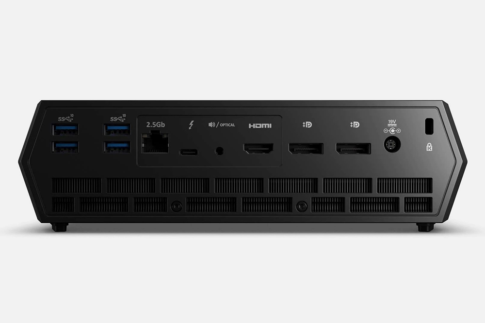 뒤쪽에는 4개의 USB 3.2 Gen2와 인텔 2.5Gb 유선랜 이더넷 포트 그리고 썬더볼트4와 HDMI 2.1, 2개의 디스플레이 포트(DP) 2.0, 19V 전원 잭, 켄싱턴 락으로 구성되어 있습니다. 확장성은 충분한 수준이라고 판단되었습니다.