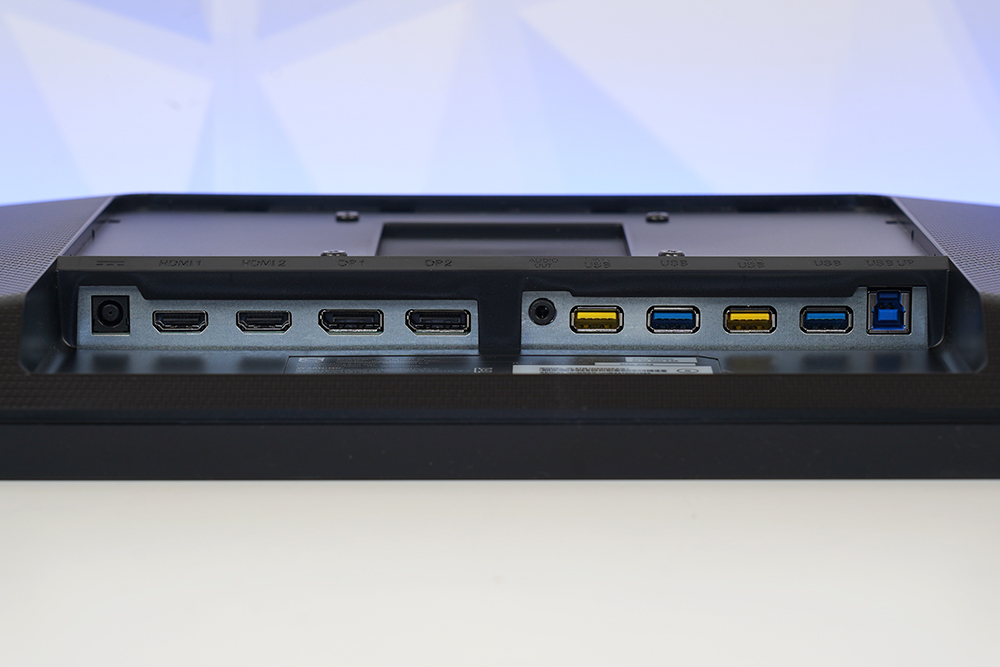 필립스 27M1N5500ZA 게이밍 모니터의 입출력 포트를 확인해 보면 2개의 HDMI 2.0과 2개의 DP 1.4가 탑재되었습니다. 그 외에도 급속충전을 포함한 USB 허브 기능까지 제공합니다.