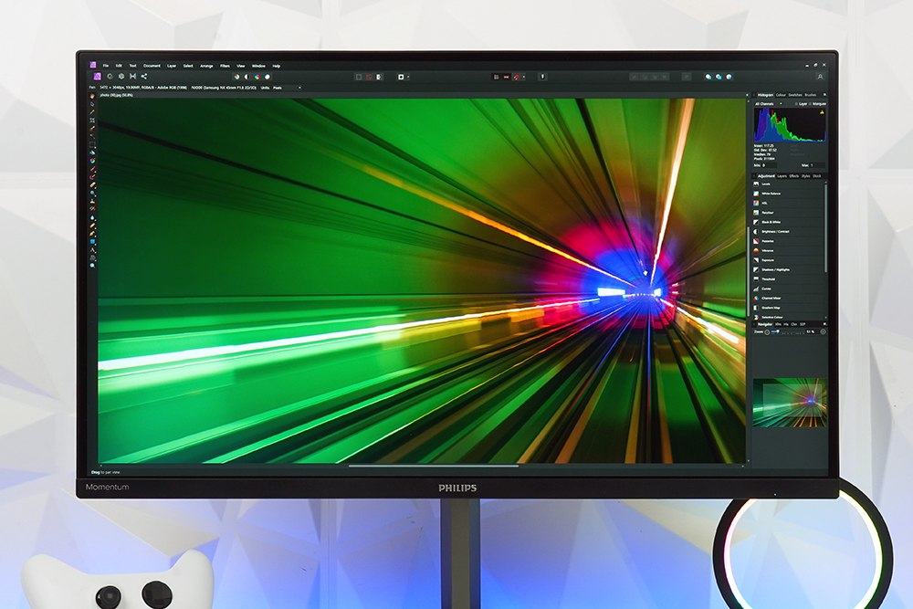 그리고 필립스 27M1N5500ZA 게이밍 모니터에 탑재된 Nano IPS 패널은 DCI-P3 커버리지 98%를 제공합니다. 그래서 간단하게 사진이나 동영상 편집 용도로도 활용할 수 있습니다.