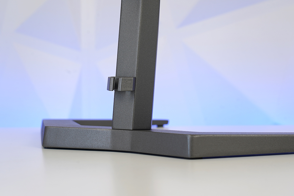 필립스 27M1N5500ZA 게이밍 모니터의 스탠드는 금속으로 제작되어서 단단한 느낌을 주는 편입니다. 그리고 별도의 도구 없이도 간편하게 조립을 할 수 있다는 점이 유용한 부분이라고 생각되었습니다.