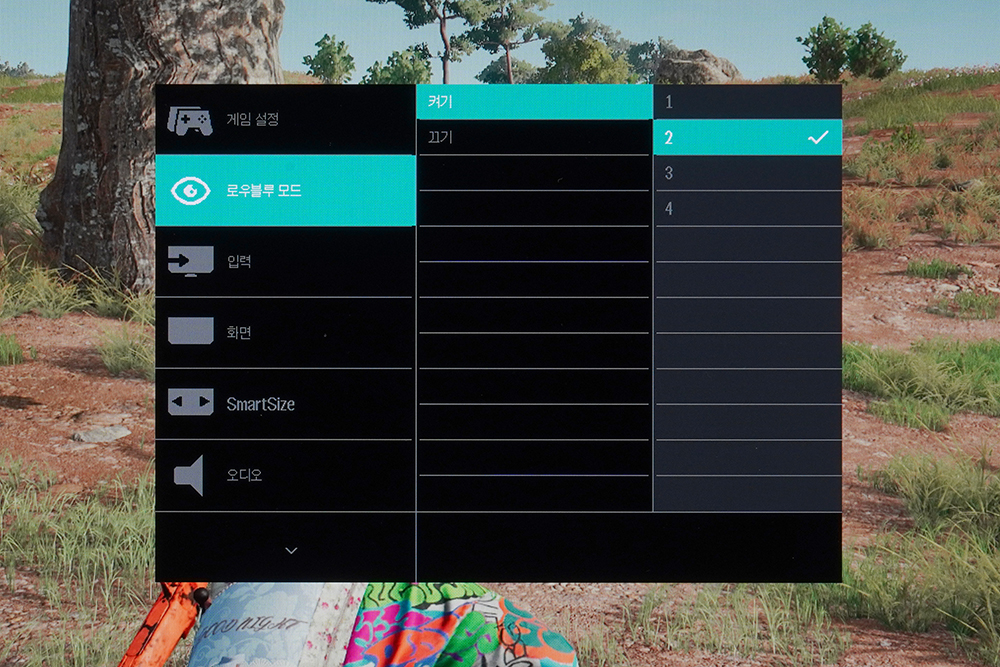 그리고 로우블루 모드를 이용하면 화면의 블루 라이트를 줄여서 눈의 피로를 줄여줍니다. 텍스트를 많이 읽어야 하는 상황에 활용하면 좋을 것 같습니다. 그렇지만 색상이 미묘하게 틀어지기 때문에 그래픽 작업을 할 때는 해당 기능을 끄는 것이 좋습니다.