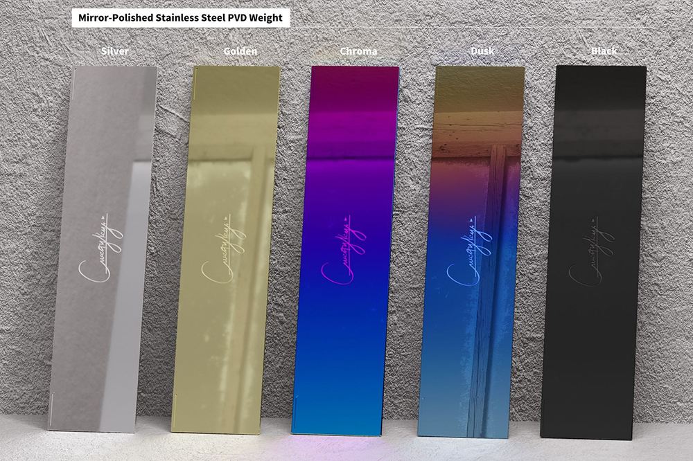 무게추 컬러의 경우에는 Silver, Golden, Chroma, Dusk, Black 중에서 선택할 수 있고 표면 처리 방식에 따라서 샌들라스트와 미러로 구분되어 있습니다. 취향에 따라서 선택해주는 것이 좋을 것 같습니다.