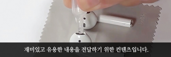 그리고 물기를 털어내고 청소용 솔(Cleaning brush)을 이용해서 먼지나 귀지를 털어준 후에 마지막으로 청소 젤(Cleaning gel)을 이용해서 남아 있는 이물질을 제거해주면 에어팟의 청소가 완료됩니다.