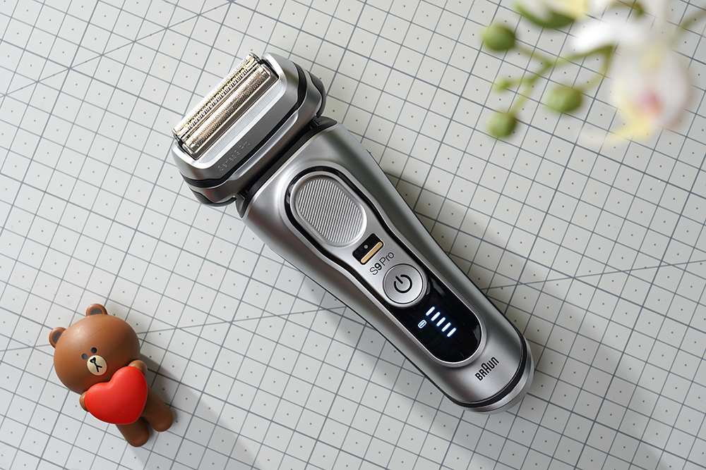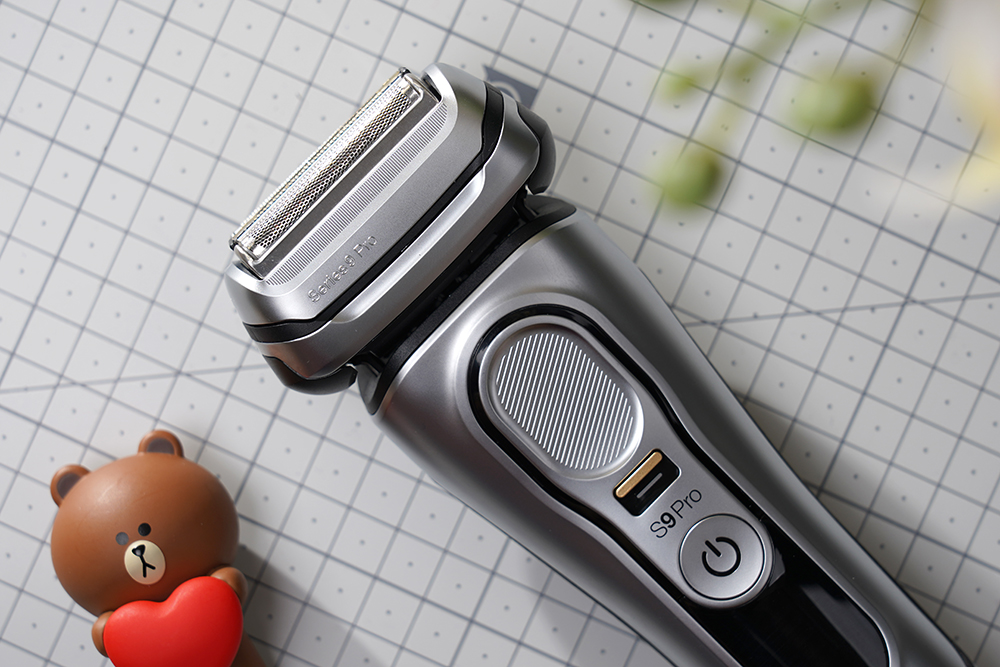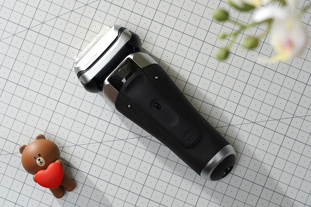 브라운 시리즈9 프로 9477cc 전기면도기의 뒤쪽은 고무 소재로 제작되어서 손에서 미끄러지는 것을 방지해주는 역할을 합니다. 실제로 미끄러운 습식 면도를 할 때는 떨어트리지 않도록 주의해주는 것이 좋을 것 같습니다.