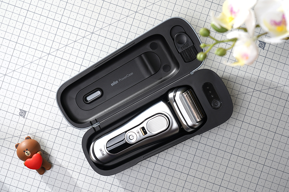 브라운 시리즈9 프로 9477cc 전기면도기는 휴대용 파워 케이스에 깔끔하게 수납될 수 있도록 제작되었고 최대 90분 정도 사용할 수 있게 만들어주는 자체적인 리튬 이온(Li-Ion) 배터리를 내장하고 있습니다. 그래서 간단한 여행이라면 별도의 충전기를 휴대하지 않아도 좋습니다. 그리고 내부에 세척용 솔도 부착되어 있고 배터리 잔량을 확인할 수 있는 LED도 내장되어 있습니다.