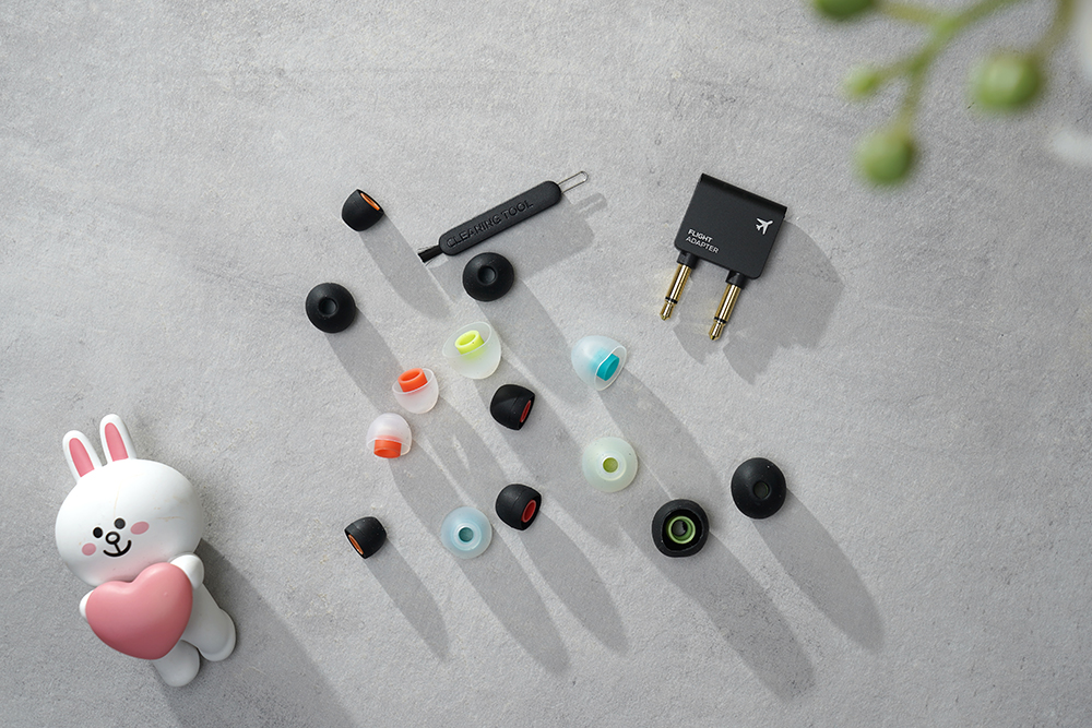 AKG N5005 하이엔드 이어폰에는 총 7종의 이어팁(4쌍의 일반적인 이어팁과 3쌍의 스핀핏(SPINFIT EAR TIPS))과 항공기용 어댑터잭 그리고 클리닝툴이 포함되어 있습니다. 플래그십 제품들은 이어팁 인심이 상당히 후한 편입니다.