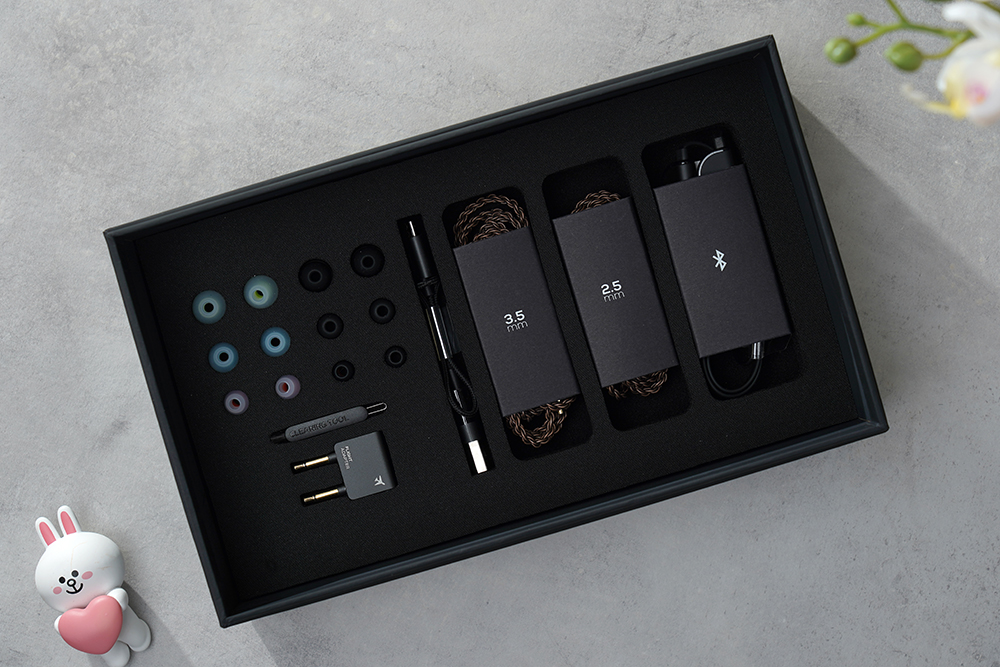 그리고 착탈식 3.5mm 커넥터를 탑재한 케이블(리모컨/마이크 포함)과 착탈식 2.5mm 커넥터 밸런스 케이블로 구성되어 있습니다. 2.5mm 밸런스 단자를 가진 DAC를 사용 중이라면 2.5mm 케이블을 사용하는 것이 좋을 것 같습니다. 실제로 2.5mm 케이블이 3.5mm 케이블보다 음질도 조금 더 괜찮다는 평가를 받고 있습니다.