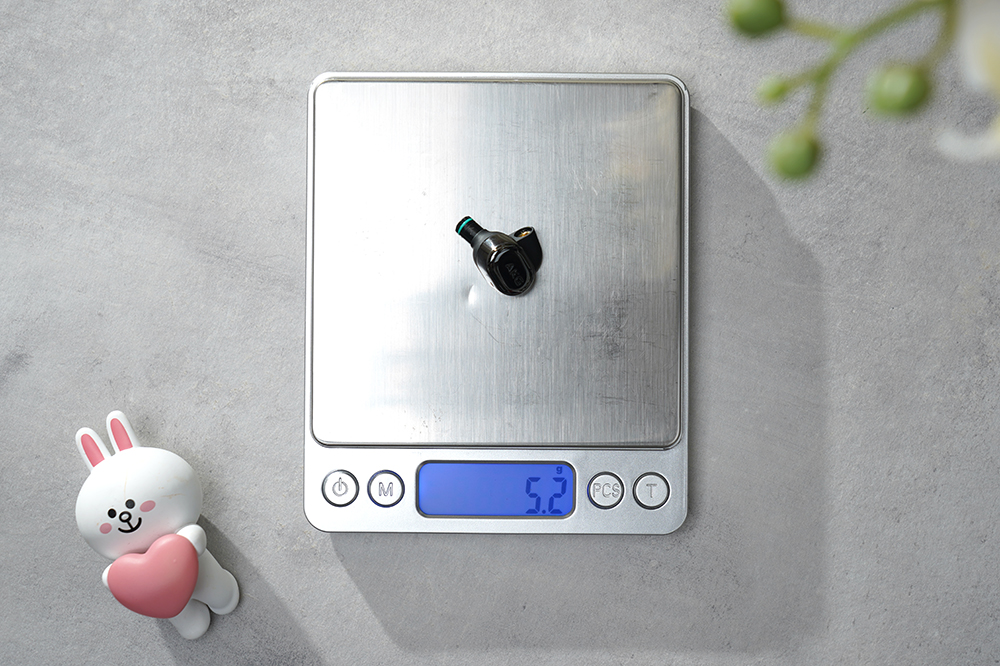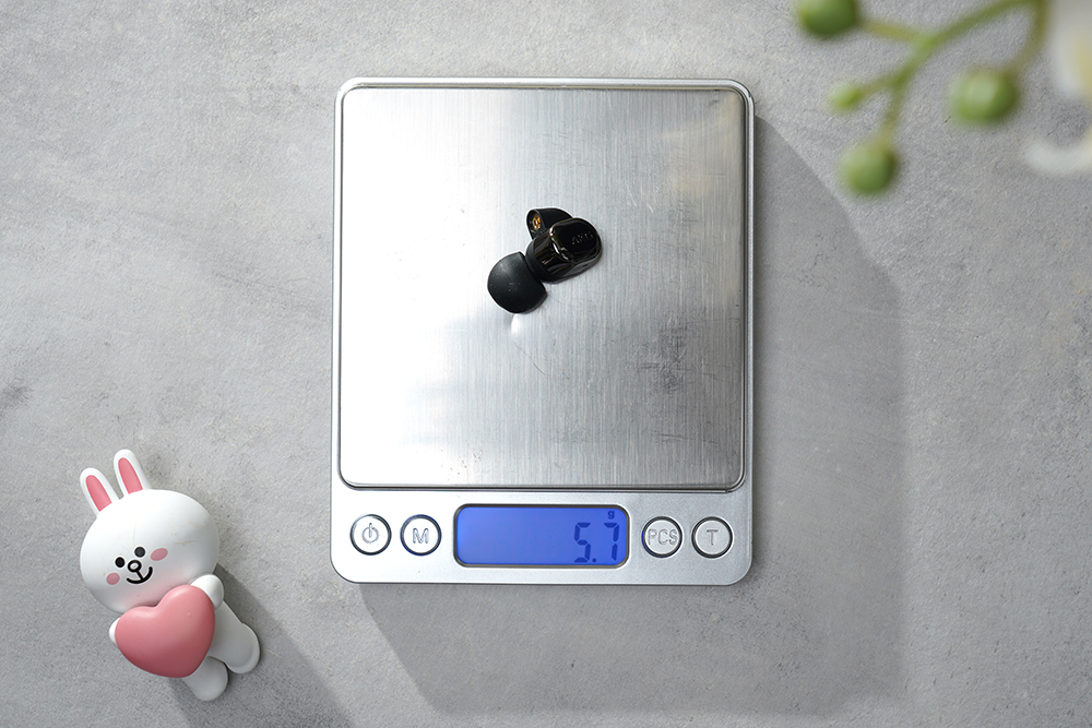AKG N5005 하이엔드 이어폰의 무게는 약 5.2g으로 측정되었고 이어팁을 장착한 상태에서는 5.7g이었습니다. 상당히 가벼운 편이어서 착용만 제대로 된다면 크게 부담감이 느껴지지 않고 오랜 시간 음악을 감상할 수 있습니다.