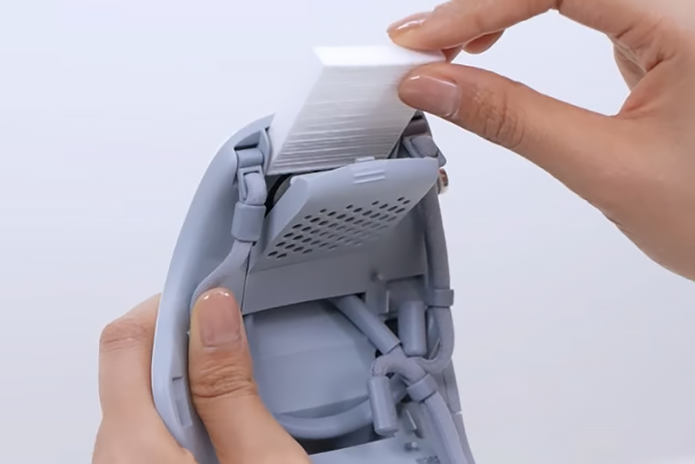 LG 퓨리케어 전자식 마스크에는 둘숨과 날숨을 감지하는 호흡센서와 두 개의 팬이 탑재되어서 편안하게 호흡을 할 수 있도록 도와줍니다. 그 외에도 또렷하게 목소리를 전달할 수 있는 마이크와 스피커도 내장되어 있습니다. 은근히 최첨단입니다.