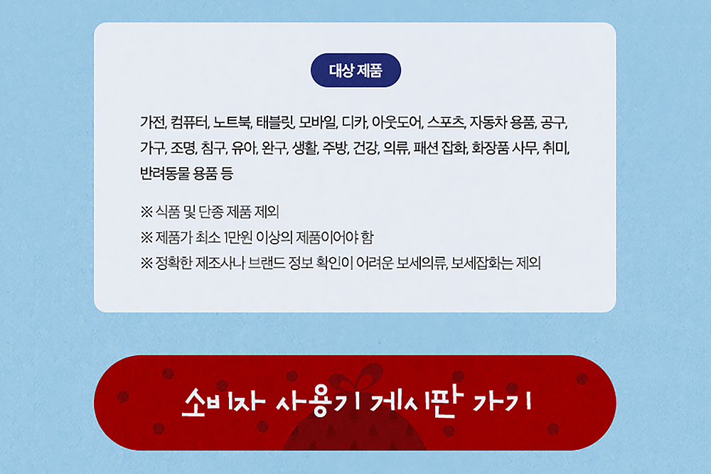 콘테스트에 참여할 수 있는 사용기 대상 제품의 경우에는 가전, 컴퓨터, 노트북, 태블릿, 모바일 등 종류가 상당히 다채로운 편입니다. 그리고 제품가는 최소 1만원 이상이어야 하고 식품이나 단종 제품은 제외됩니다.