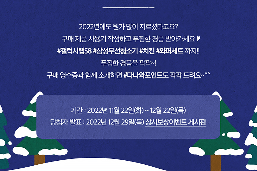 다나와 2022년 내돈내산 사용기 콘테스트의 경우에는 2022년 11월 22일부터 12월 22일까지 한 달 정도 진행되고 당첨자의 경우에는 2022년 12월 29일 상시보상이벤트 게시판을 통해서 발표됩니다. 자세한 내용은 아래의 링크를 통해서 확인할 수 있습니다.