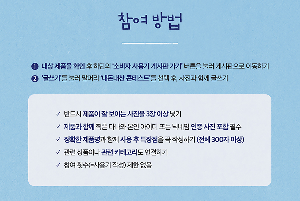 콘테스트에 참여할 수 있는 사용기 대상 제품의 경우에는 가전, 컴퓨터, 노트북, 태블릿, 모바일 등 종류가 상당히 다채로운 편입니다. 그리고 제품가는 최소 1만원 이상이어야 하고 식품이나 단종 제품은 제외됩니다.