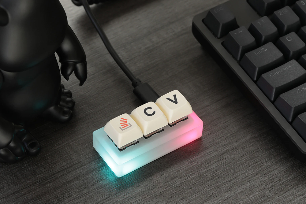 Stack Overflow THE KEY V2 MACROPAD의 경우에는 아크릴 소재로 제작되었고 내부에 2개의 RGB LED가 내장되어 있습니다. 그리고 3개의 키를 이용해서 매크로 기능으로 활용할 수 있습니다.