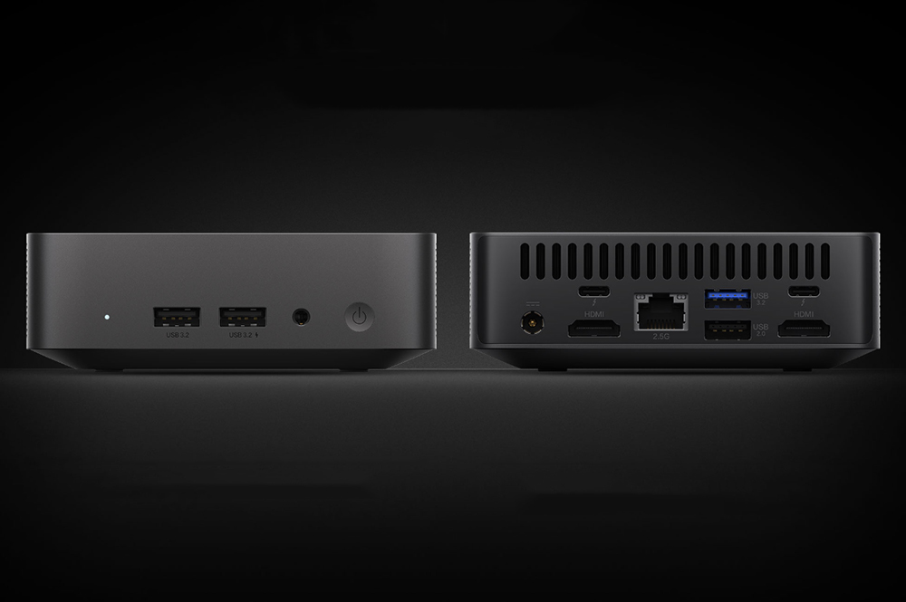 샤오미 미니컴퓨터의 입출력 포트를 확인해 보면 전면에는 2개의 USB 3.2 Gen 2와 3.5mm 이어폰 단자 그리고 전원 버튼이 배치되어 있습니다. 그리고 뒷면에는 2개의 썬더볼트4와 2개의 HDMI 2.1 그리고 2.5G 유선랜 그리고 USB 3.2 Gen 2와 USB 2.0으로 구성되어 있습니다. 확장성은 은근히 괜찮은 편이라고 판단되었습니다.
