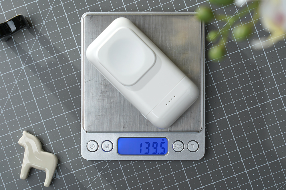 잇버스 워치밥 IBT-WC005 보조배터리의 무게는 실제로 139.5g으로 측정되었습니다. 역시 휴대하는데 크게 불편함을 느낄만한 수준은 아니라고 판단되었습니다. 그렇지만 보조배터리의 특성 무게 대비 약간 묵직하다고 생각될 수는 있습니다.