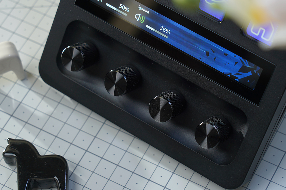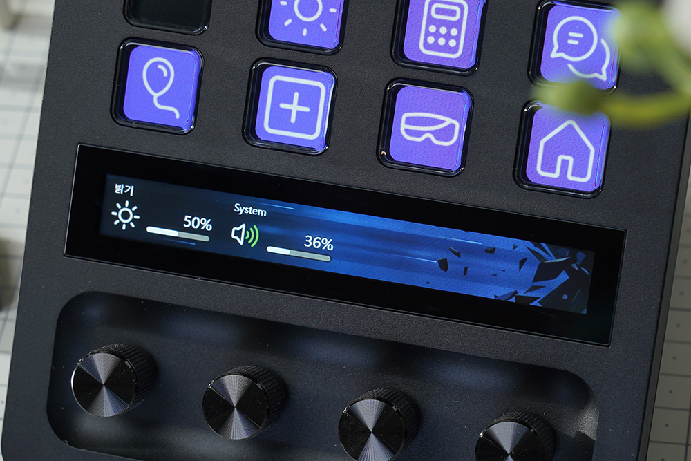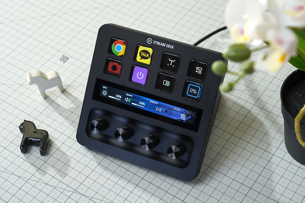 마지막으로 푸시 기능이 있는 4개의 다이얼 같은 경우에는 마감이 좋은 편이었고 밝기나 볼륨 등을 편리하게 변환할 수 있습니다. 그렇지만 아직 호환되는 기능들이 많지 않다는 점은 아쉬운 부분입니다. (엘가토의 카메라나 마이크 그리고 조명과 연동해서 사용할 수 있습니다.)