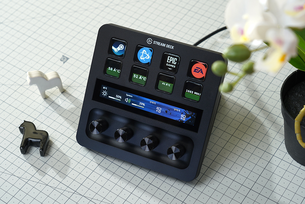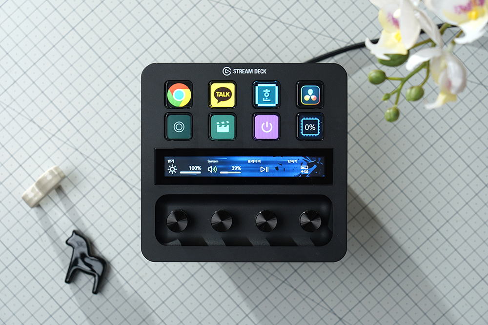 제가 엘가토 스트림덱 플러스를 활용하는 방법을 살펴보면 우선 기본적인 상태에서 각종 프로그램을 실행시키거나 필립스 휴(hilips Hue) 조명을 제어하고 기본적인 CPU 사용량을 확인하는 용도로 사용하고 있습니다.